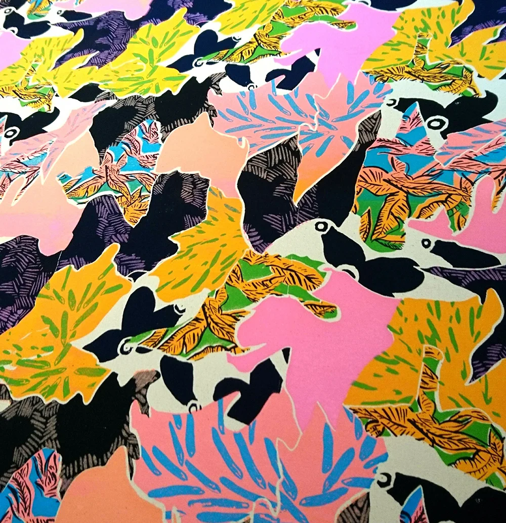 Repeat screen printed pattern, ink on cotton, 2016